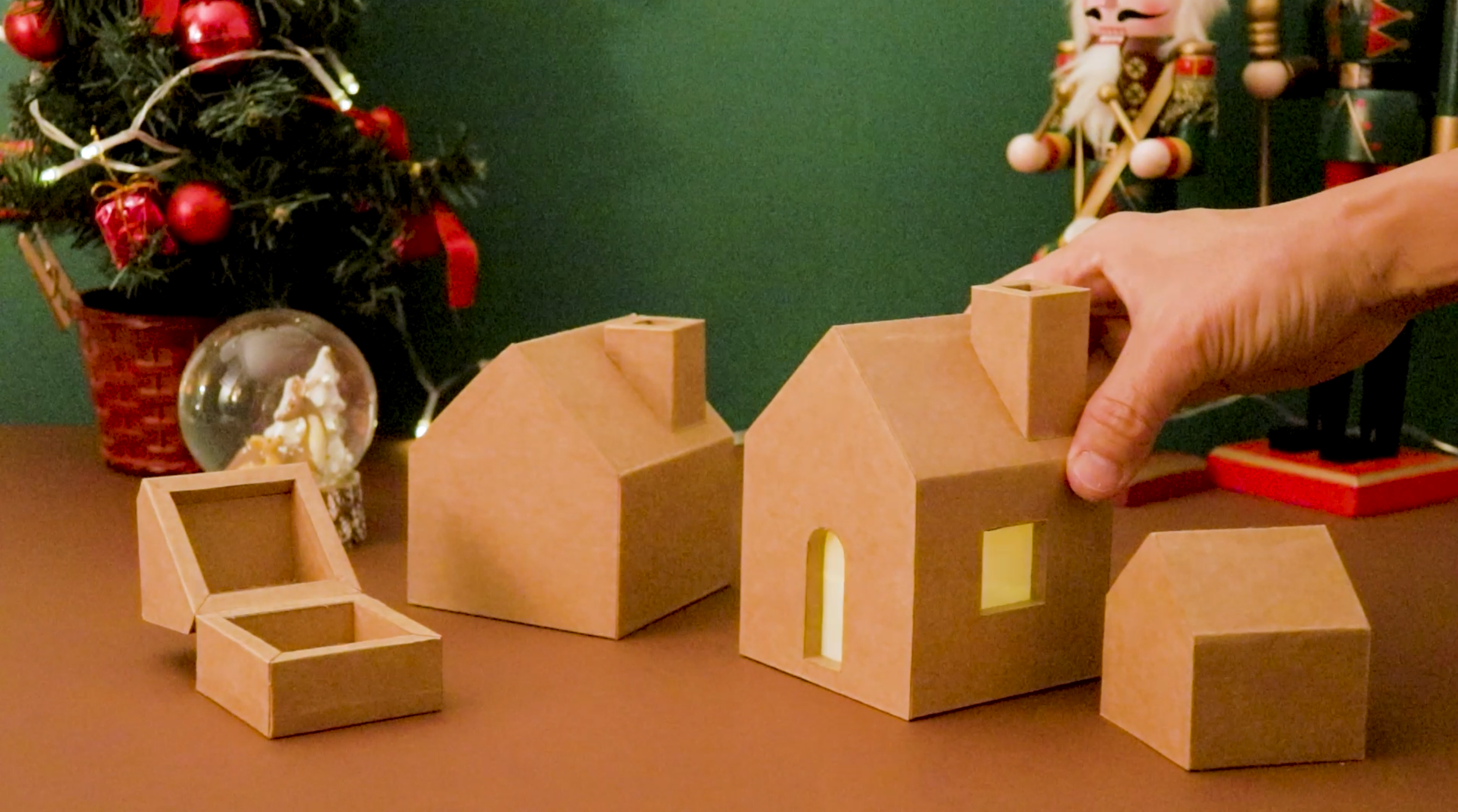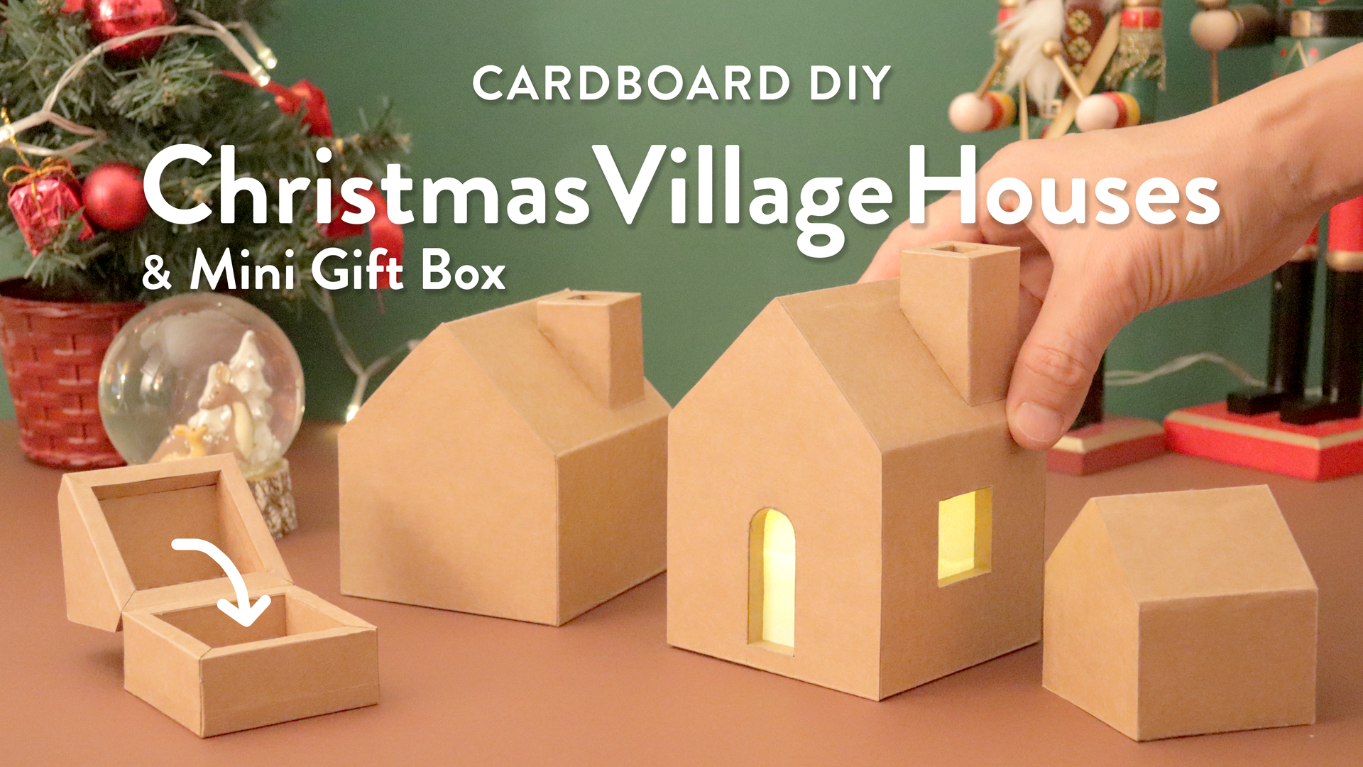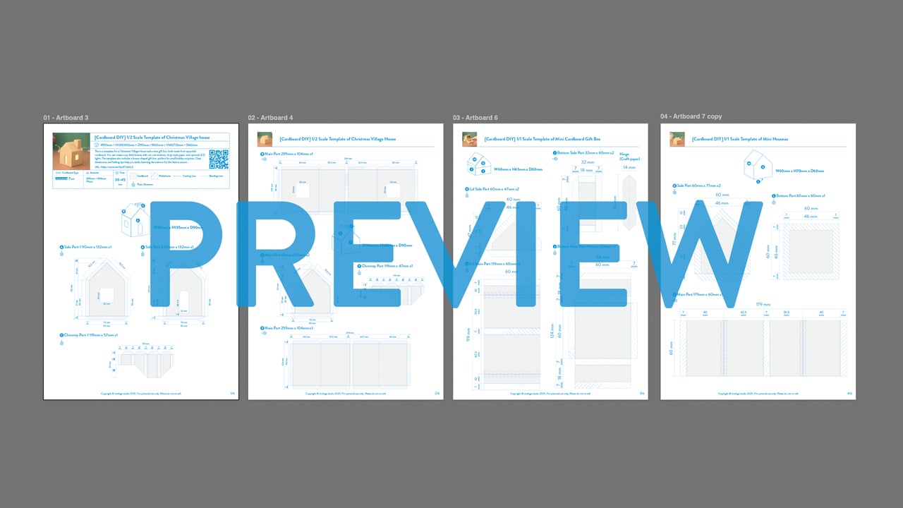 Christmas Village Houses + Mini gift box made from Cardboard A4 Printable 1/2, 1/1 scale PDF template